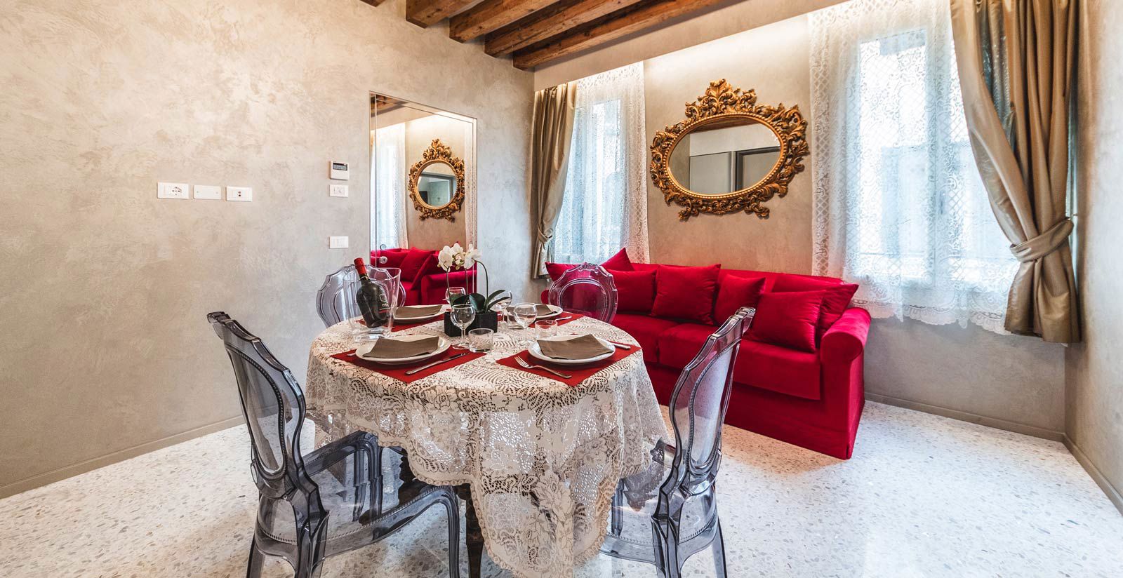 Questi appartamenti sono molto luminosi ad ampi, sono studiati nei minimi dettagli e arredati in stile veneziano rivisitato in chiave moderna, secondo gli eleganti e sfarzosi gusti della proprietaria veneziana. Sono situati nella zona più viva ad animata della città, vicino al mercato e a molti Bacari e ristoranti.